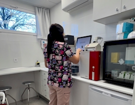 donde se realizan análisis de sangre, análisis de orina y estudios microscópicos (citologías, tricografías, frotis,... etc) en el acto.